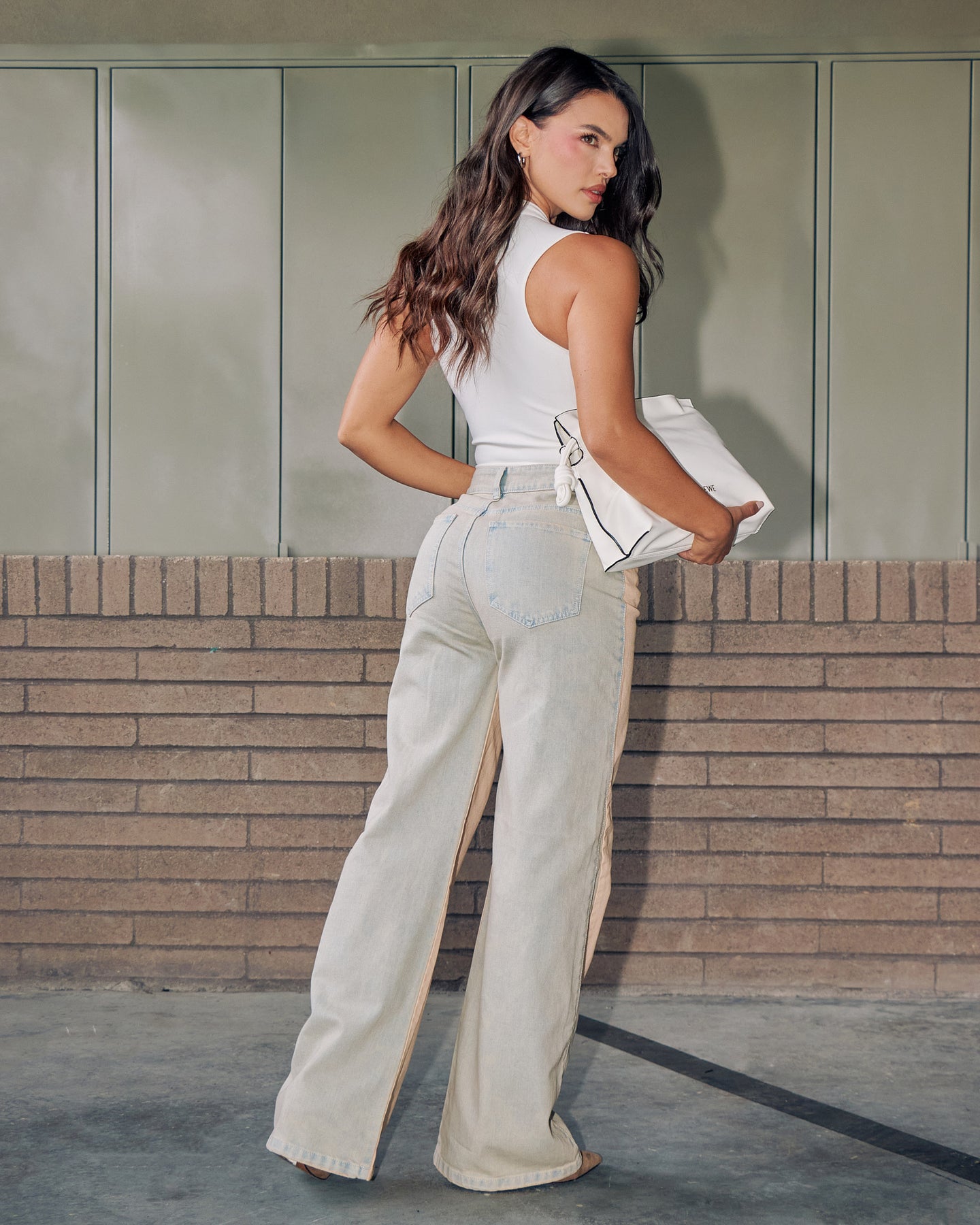 PANTALON DAMA WIDE LEG TIRO ALTO, CON DISEÑO CUATRO BOLSILLOS