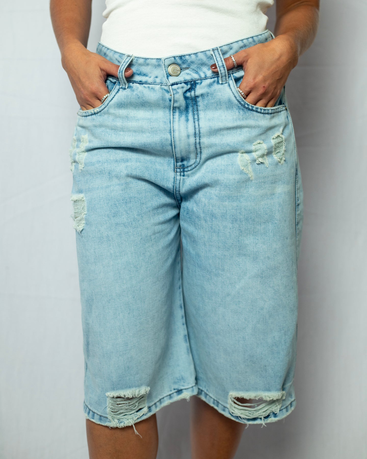 La bermuda en Tiro Alto para dama en denim azul es la combinación perfecta entre estilo relajado y comodidad. Su silueta amplia y moderna resalta un look urbano diferente, ideal para quienes buscan marcar tendencia sin perder frescura.