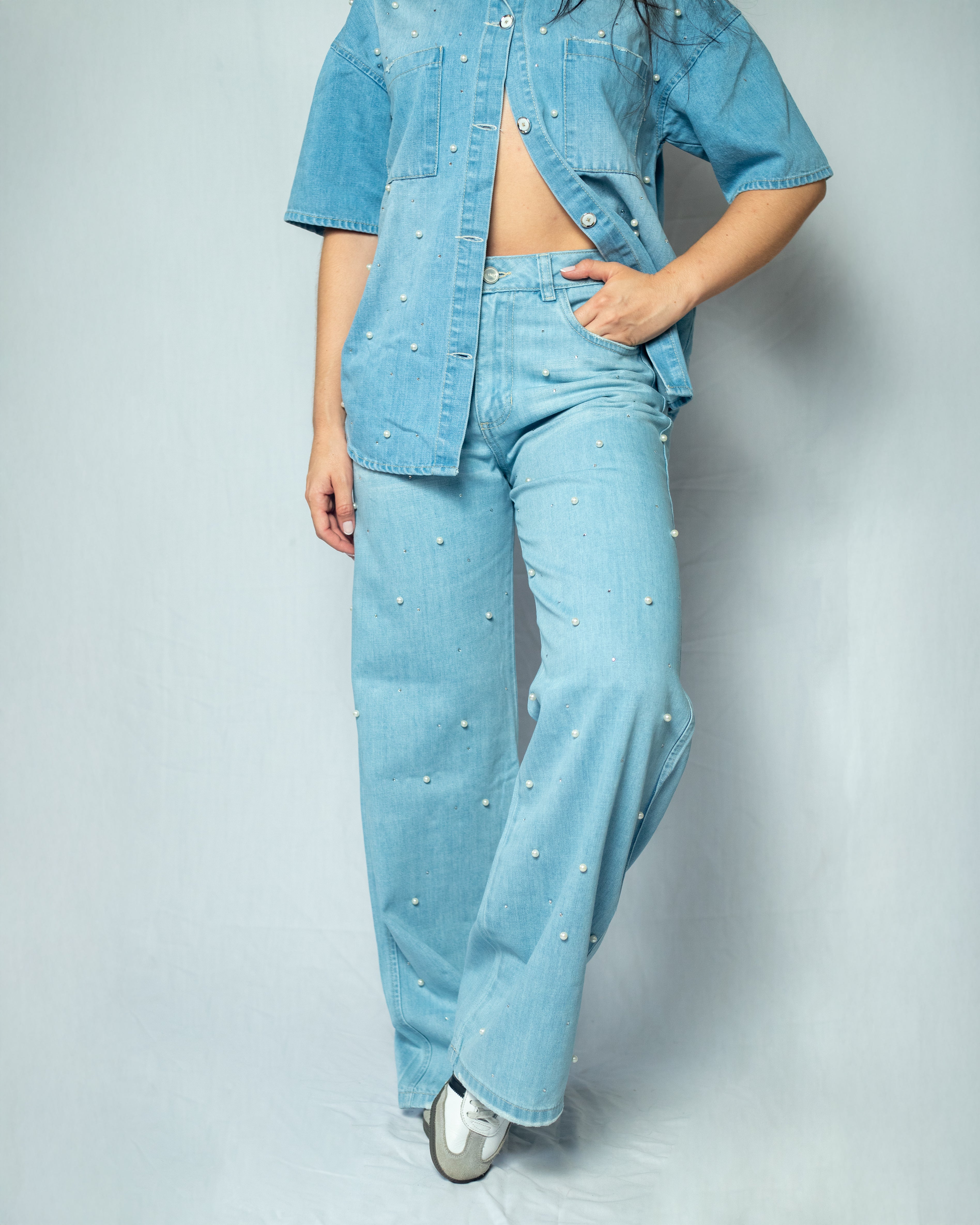 PANTALON DAMA WIDE LEG TIRO ALTO, CON DISEÑO CUATRO BOLSILLOS