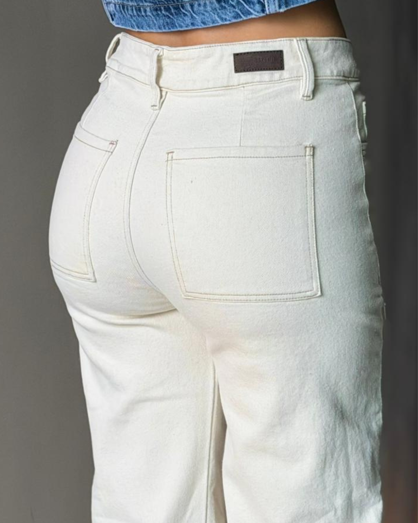 PANTALON DAMA WIDE LEG TIRO ALTO, CON DISEÑO CUATRO BOLSILLOS