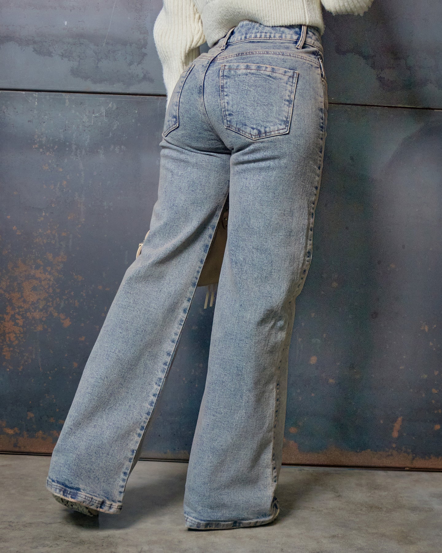 PANTALON DAMA WIDE LEG TIRO ALTO, CON DISEÑO CUATRO BOLSILLOS